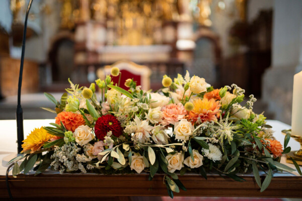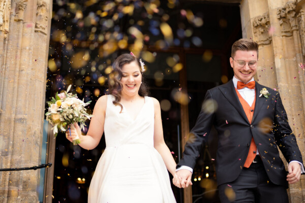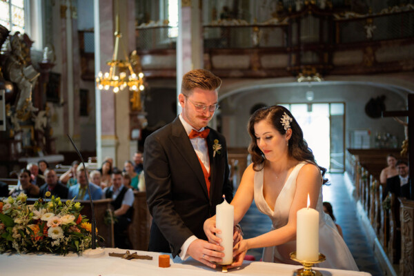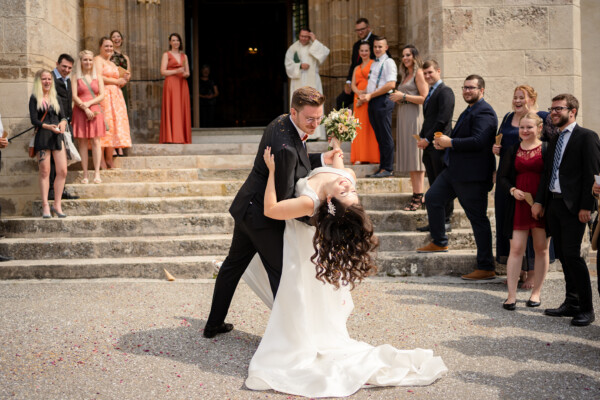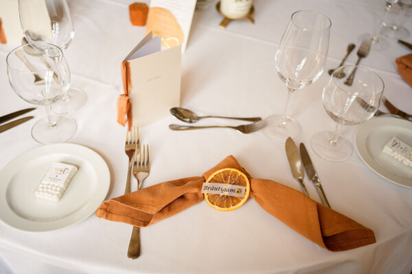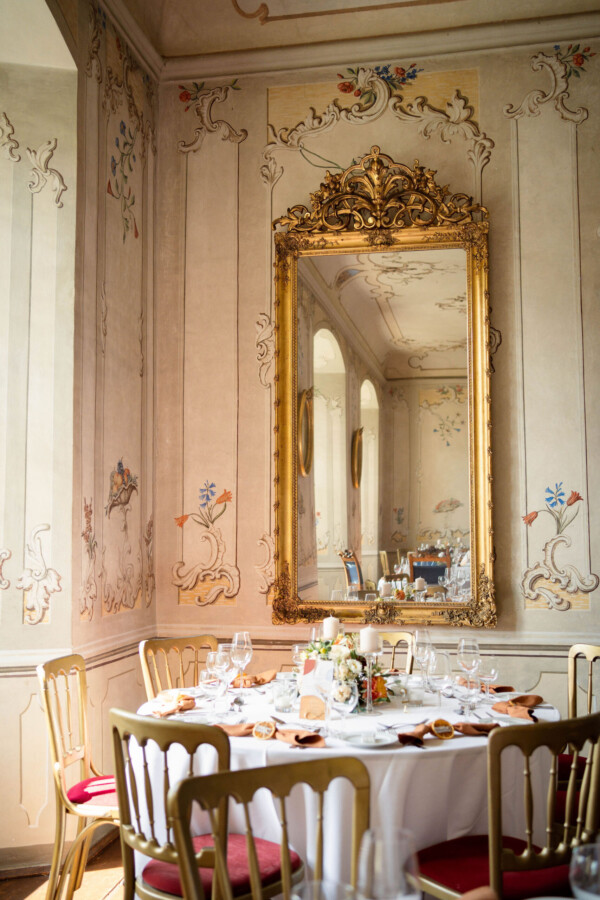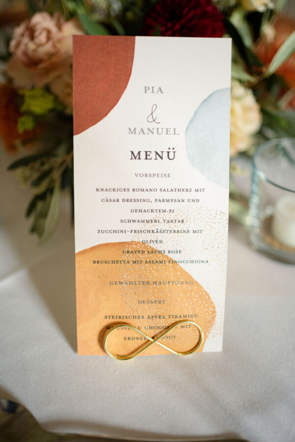 Pia und Manuel feierten eine internationale Hochzeit, in einem romantischen kleinen Schloss. Direkt am Schloss gelegen, fand die kirchliche Trauung im feierlichen Rahmen statt. Das Konzept in Terracotta wurde passend zur Farbgebung des Schlosses gewählt.